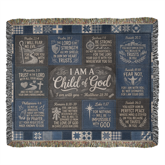 I Am A Child Of God – KJV Scripture Patchwork Woven Blanket | Christian Faith Throw For Believers